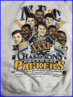 GREEN BAY PACKERS Vintage 1997 Superbowl Champions Rare NFC With Sticker USA Sz L See photos for true & accurate representation.